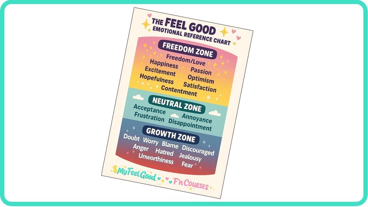 It’s a concept that is based on the teachings of Abraham-Hicks (a spiritual and inspirational teacher) that is designed to help individuals understand and navigate their emotions towards achieving greater emotional well-being and alignment with their desires.