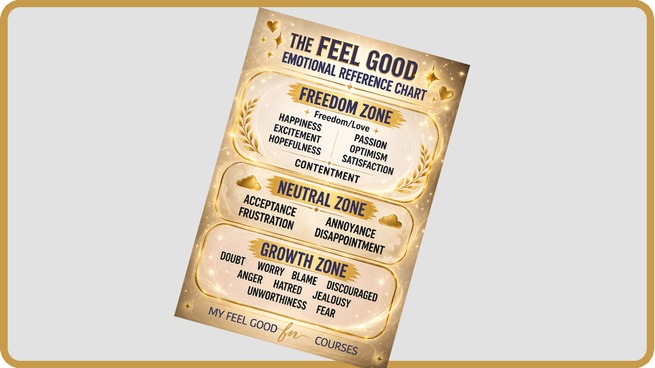 We use the Emotional Guidance Scale... a simple, powerful roadmap to help you move up the emotional ladder. Think of it like emotional GPS. You're not going from fear to joy in one leap (spoiler: nobody does), but you can go from fear to anger, anger to hope, hope to excitement, and eventually… love and freedom. And we’ll walk (or dance!) with you every step of the way.